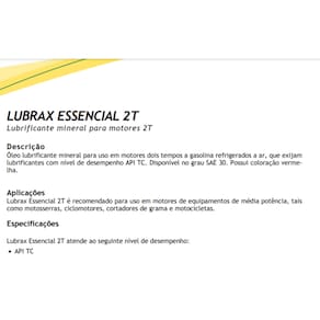 Lubrax Essencial 2T atende ao seguinte nível de desempenho: