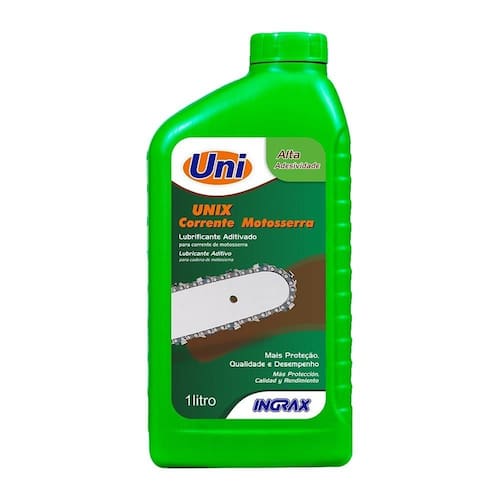 Características Principais do Produto: Marca: Uni Linha: Unix Aplicação: Correntes de motosserras Composição: Óleo com aditivos antiespumantes e agentes de adesividade Adesividade: Alta, reduz a expulsão do lubrificante