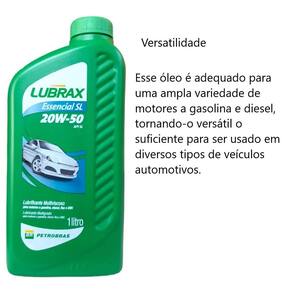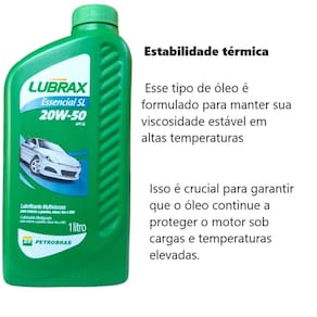 O óleo Lubrax SL Essencial Automotivo 20W50 é um tipo de lubrificante projetado especificamente para motores de carros. Ele possui uma viscosidade de 20W50, o que significa que é adequado para uso em uma variedade de condições climáticas e temperaturas. Aqui está uma descrição mais detalhada deste óleo para motor de carro: Viscosidade: O número 20W50 indica a viscosidade do óleo. O 20 refere-se à viscosidade do óleo a baixas temperaturas, o que ajuda na partida a frio do motor. O 50 indica a viscosidade do óleo a altas temperaturas, garantindo a proteção adequada do motor sob cargas e temperaturas elevadas. Lubrificação: O óleo Lubrax SL Essencial Automotivo 20W50 é formulado para fornecer uma camada de lubrificação eficaz entre as peças móveis do motor, reduzindo o atrito e o desgaste, prolongando assim a vida útil do motor. Proteção contra desgaste: Este óleo é projetado para oferecer proteção contra o desgaste das peças internas do motor, como pistões, anéis, bielas e mancais. Isso ajuda a manter o desempenho do motor ao longo do tempo. Limpeza do motor: O Lubrax SL Essencial Automotivo 20W50 também possui aditivos que ajudam a manter o motor limpo, evitando depósitos de sujeira e lama, o que pode prejudicar o desempenho do motor. Estabilidade térmica: Ele é formulado para manter sua viscosidade estável em altas temperaturas, o que é fundamental para garantir a proteção do motor sob condições de uso intensivo. Aplicação: Este óleo é adequado para uma ampla gama de motores a gasolina e diesel, sendo versátil o suficiente para ser em diversos tipos de veículos automotivos. Lembrando que é importante verificar o manual do proprietário do seu carro para garantir que o Lubrax SL Essencial Automotivo 20W50 seja o óleo recomendado para o seu veículo, pois as especificações de óleo podem variar entre diferentes modelos e marcas de carros. Além disso, é fundamental seguir as recomendações de troca de óleo estabelecidas pelo fabricante do veículo para manter o motor em bom estado de funcionamento. Marca: Não Informado Ean: 7898920506954