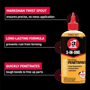 - Testes de laboratório independentes mostram que o óleo de gotejamento penetrante 3 em um pode penetrar até 3 vezes mais rápido e evitar a ferrugem melhor do que os principais concorrentes - Ótimo para uso em ferramentas, dobradiças, porcas e parafusos. Seguro para uso em plásticos, borracha e metal
