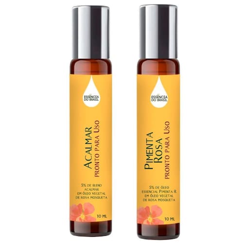 Óleos Essenciais Prontos Acalmar e Pimenta Rosa Roll On 10ml kit Óleos Essenciais Roll-On Pronto para Uso.