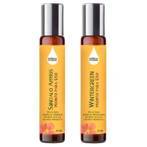 Óleos Essenciais Prontos Sândalo e Wintergreen Roll On 10ml kit Óleos Essenciais Roll-On Pronto para Uso.