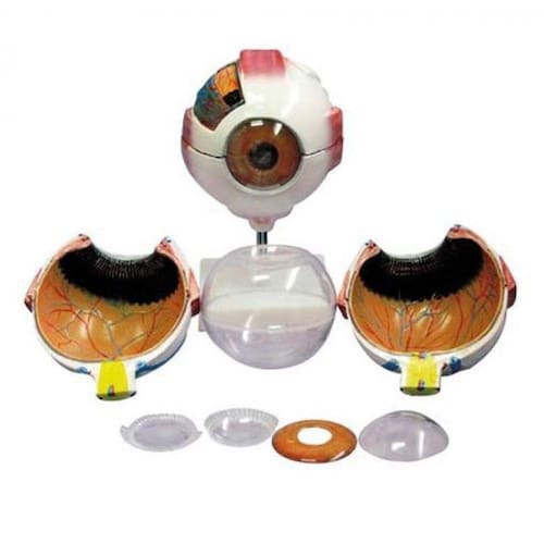 Este modelo ajuda os estudantes a compreender a anatomia externa e as estruturas internas do olho. As partes diferentes do modelo do globo ocular são removíveis e mostram as seguintes estruturas. 1. Túnica externa: mostrando a córnea e a esclera com os acessórios dos músculos oculares e do nervo óptico. 2. Túnica do meio: mostrando a íris, a retina e a coróide. 3. Túnica interna é a retina. 4. Refração média: mostrando as lentes e o humor vítreo.É possível observar no modelo o globo ocular, coróide, retina esclerótica, conjuntiva, lente (cristalino), pupila, córnea, íris, humor vítreo, nervo óptico, músculo reto lateral, músculo reto superior e vasos. Este modelo é composto por 8 partes e é 6 vezes ampliada. Montado em base de plástico com haste de ferro. Embalagem: Caixa de papelãoDimensão: 16.5cmMaterial: PVC lavável e inquebrávelMedidas da Caixa: 17x18x19cmPeso: 1.5kg