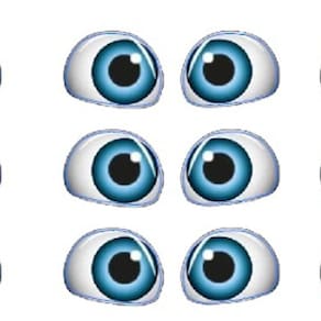 Olhos Azuis ( Kit com 10 pares) Tinta comestíveis . Feitas com papel (kit 10 unidades) Ideal para decoração de cupcakes, pirulitos, detalhes que encantam. Aquele detalhe para finalizar o seu produto. Tamanho aproximado. 0,5 cm Foto meramente ilustrativa.