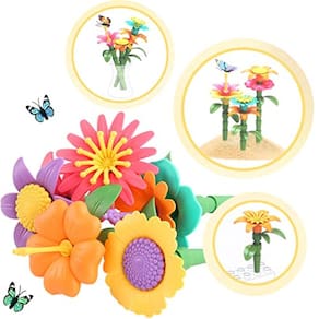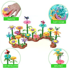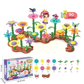 OLRMA Flower Garden Building Brinquedos para Meninas 3 4 anos de idade, 90 peças Conjunto de construção de jardim com boleta, flores, Stems, Bases, STEM Toy Preschool Activity Stacking Game Simula Playset para crianças presente