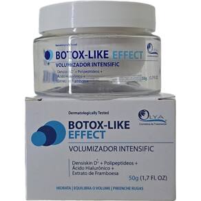 Creme botox-like effect - facial hidrata equilibra os volumes preenche rugas Ação na reposição dos volumes faciais. Reparação e antifadiga; Regenerador de pele; Estimula a longevidade; Restaura a densidade da pele; Indicado para peles desvitalizadas. Indicação Reequilibra os volumes do rosto e recupera a densidade através de um peptídeo volumizador e dos sacarídeos da peonia. As rugas são reduzidas, os contornos do rosto são redefinidos e a pele recupera a tonicidade e a firmeza. Fórmula altamente nutritiva e rica em ômegas, 6, 7 e 9, esqualano vegetal, vitamina e, confere extra vitalidade, traços mais harmoniosos e uma pele visivelmente mais jovial. Indicada para todo tipo de pele.