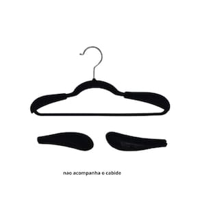 Ombreira de Veludo Adulto Preto – Kit com 10 Pares???? Descrição:A Ombreira de Veludo Adulto é a escolha perfeita para manter suas roupas bem cuidadas, organizadas e livres de deformações nos cabides. Fabricada com estrutura interna de plástico resistente e revestimento aveludado, ela evita que peças escorreguem ou sofram desgaste por atrito, sendo ideal para tecidos delicados como seda, viscose e malhas finas.Seu encaixe é simples e eficiente, trazendo mais praticidade ao dia a dia de closets, araras e provadores. Disponível em kit com 10 pares na cor preta, combina elegância com funcionalidade.? Vantagens e Benefícios:• Estrutura leve e resistente• Evita que roupas escorreguem do cabide• Preserva a forma das peças• Ideal para tecidos delicados• Fácil de encaixar e utilizar???? Ficha Técnica (sem caracteres especiais): Produto: Ombreira de veludo adultoCor: PretoTamanho: 14.5 x 4.5 x 2 cmMaterial: 82 por cento plastico, 18 por cento nylonAcabamento: Revestimento em veludoUso indicado: Para cabides com roupas delicadasQuantidade: Kit com 10 paresDiferenciais: Leve, nao escorrega, nao danifica o tecido