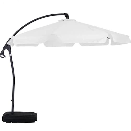 Sua cobertura em poliéster com extra ventilação vai te proteger dos raios solares, além de manter a sombra sempre fresca. O Ombrelone Suspenso Búzios Giratório 360 3,00m Branco tem haste em alumínio, acionamento por manivela e inclinação regulável para projetar melhor a sombra de acordo com a posição do sol. O ombrelone é um produto de fácil manuseio, com giro de 360 e suporte para luminária.