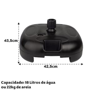 Produzida em polietileno, ela pode ser preenchida com 18l de água ou 22kg de areia para fixar seu Guarda-Sol em qualquer lugar.