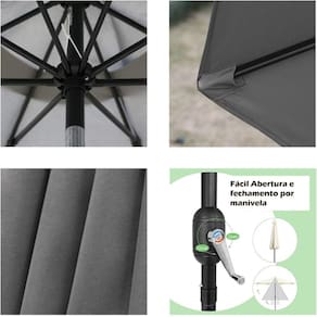 ( Fácil Operação ) O ombrelone facilita o uso. Basta girar a manivela para abrir o ombrelone. Caso deseja alterar a inclinação da cobertura é só pressionar o botão na articulação.