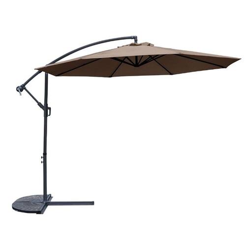 Especificações: Estrutura: alumínio e pintura a pó, base cruz em aço, compatível com base lateral. Cobertura: quadrada de 2,5 x 2,5m em tecido poliéster de 160G/M² Impermeável e com proteção UV.