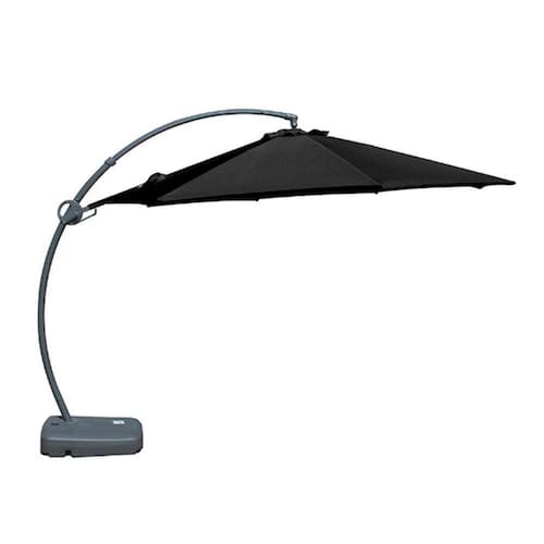 Estrutura em alumínio com pintura á pó cinza, poste 60*1,8mm; 8 varetas 22*13*1,0mm,. possui a base em polietileno de alta densidade para ser preenchido com água (50kgs) e areia (75kgs).