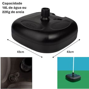Produzida em polietileno, ela pode ser preenchida com 18l de água ou 22kg de areia para fixar seu Guarda-Sol em qualquer lugar.