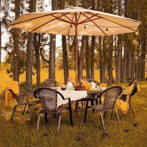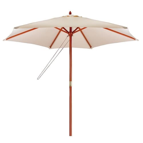 Garanta a sua sombra refrescante nos dias ensolarados com o Ombrelone de Madeira 3m! Sua estrutura em madeira garante maior durabilidade e o torna ideal para qualquer ambiente externo, seja no seu jardim, ao lado da piscina ou em sua varanda. Seu tecido em poliéster possui FPS 35 e está disponível em duas opções de cores: bege e azul. Não acompanha a base, mas possui haste com 37mm e pino de travamento para manter o ombrelone aberto, o qual fica preso à haste com corda, evitando que seja perdido. Adicione elegância onde você quiser com o Ombrelone de Madeira 3m!Importante: O uso do Ombrelone não dispensa o uso de Protetor Solar. MATERIAL:Madeira COR PREDOMINANTE: Azul INFORMAÇÕES IMPORTANTES HASTE: 37mm GARANTIA: 90 Dias ALTURA: 2,58 Metros LARGURA: 3,00 Metros COMPRIMENTO: 3,00 Metros PESO: 6,64 Kilogramas OBSERVAÇÕES: Os objetos que ambientam as imagens não acompanham o produto! Diâmetro: 3 m | Marca: Mor | Largura: 3 m | Modelo: Madeira | Usos recomendados: Casa e Jardim | Fonte do produto: Importado | Tipo de guarda-sol: Madeira | Material do guarda-sol: Tecido | Inclui base: Não | Nome do desenho: Bege | É reclinável: Não | Forma: Redondo | Acessórios incluídos: Nenhum | Condição do item: Novo | Material da estrutura: Madeira | Com altura ajustável: Não | É kit: Não Cor: Bege