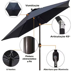 OMBRELONE IPANEMA 6 HASTES COM MANIVELA – 2,5 METROS