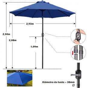 ( Fácil Operação ) O ombrelone facilita o uso. Basta girar a manivela para abrir o ombrelone. Caso deseja alterar a inclinação da cobertura é só pressionar o botão na articulação.