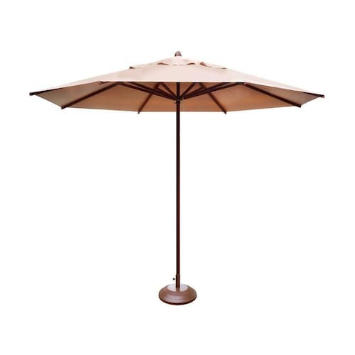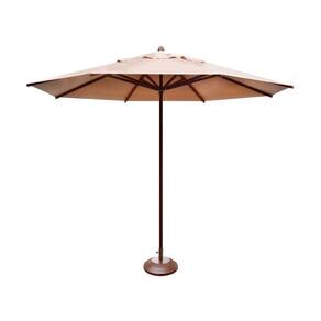 Características Técnicas:Material Ombrelone: Estrutura em Madeira Tratada e tecido bagun bege com proteção UV.Material da Base: Alumínio com Pintura Eletroestática e Concreto Refratário.Largura Aberto: 300cm.Altura Total: 230cm.Largura Base: 40cm.Altura Base: 10cm.Peso: 28Kg.