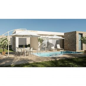Ombrelone Lateral 3m Trancoso Fendi com Manivela Fratini sem Base - Especificações TécnicasDiâmetro: 3,00 metros.