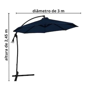 Ombrelone Lateral Suspenso 3 Metros Jardim com Base e Manivela Importway Iwoblb-300 - Cor: Azul