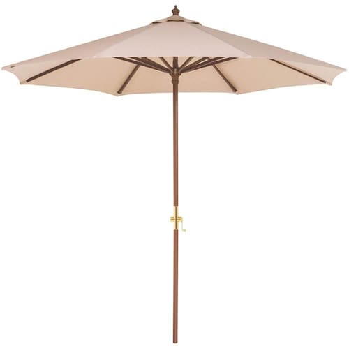 INFORMAÇÕES GERAIS - Ombrelone na cor bege. - Possui 2,7m de diâmetro da cobertura - Material da Estrutura: Madeira. - Possui manivela central que facilita a abertura do ombrelone. - A base de concreto garante maior resistência e segurança para o seu ombrelone em dias de vento. * Vendida separadamente através da referência:14999010