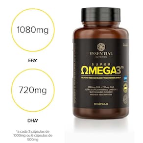 Super ômega 3 tg essential é um suplemento de ômega-3 epa e dha na forma tg - mesma forma encontrada na natureza, o que favorece o aproveitamento no organismo. É obtido por processo patenteado de destilação molecular e com padrões de pureza extremamente rígidos em relação a metais pesados e demais contaminantes, como pcbs, mercúrio e dioxinas. Fornecer alta concentração de ômega-3 epa e dha de excelente qualidade. Os ácidos graxos ômega 3 epa e dha auxiliam na redução dos triglicerídeos. Diferenciais de qualidade Disponível na forma tg, proporcionando superior biodisponibilidade e absorção. Certificação ifos de excelência de qualidade. Obtido por processo diferenciado e patenteado de destilação molecular e com padrões de pureza extremamente rígidos em relação a metais pesados e outros contaminantes, como pcbs, mercúrio e dioxinas. Alta concentração de ômega-3: 360mg epa e 240mg dha a cada 1 cápsula de 1000mg ou a cada 2 cápsulas de 500mg. Ingredientes Óleo de peixe pronova pure ômega-3 tg e d-alfa-tocoferol. Composição da cápsula: gelatina, água purificada e umectante glicerina. Não contém glúten. Alérgicos: contém derivados de peixe. Pode conter soja. Pode apresentar traços como consequência da presença não intencional durante alguma etapa da fabricação das matérias-primas ou da linha de produção. Marca: Não Informado