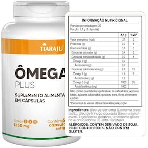 Um combo de três ácidos graxos poderosos: ômegas 3, 6 e 9.625 mg de óleo de linhaça625 mg de óleo de cártamo625 mg de cada óleo por cápsula.Ingredientes: óleo de cártamo carthamus tinctorius l. , óleo de linhaça dourada linum usitatissimum l. , gelificante gelatina, umectante glicerina e antioxidante dl-alfa-tocoferol.Recomendação de uso: adultos a partir de 19 anos, consumir 3 cápsulas ao dia, com 200 ml 1 copo de água.Alérgicos: contém derivado de soja. Pode conter derivado de peixes. Não contém glúten.