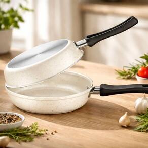 Omeleteira em alumínio com revestimento interno e externo antiaderente Starflon Max. Cabos em baquelite antitérmico. Fácil de limpar e pode ir à máquina de lavar louças.Base antiderrapante