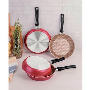 Omeleteira Alumínio Antiaderente Starflon Loreto Tramontina Frigideira Dupla para Fazer Omelete 20cm Vermelho.