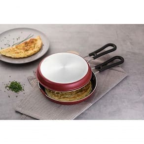 A omeleteira Tramontina Loreto em alumínio com revestimento interno e externo em antiaderente Starflon Max vermelho 24 centímetros de diâmetro é um utensílio indispensável para quem adora saborear aquele omelete de queijo e legumes. Produzida em alumínio com espessura especial e revestimento em antiaderente Starflon Max, ela proporciona o cozimento dos alimentos de maneira uniforme e evita que eles grudem em sua superfície, além de ser durável, fácil de limpar e não prejudicial à saúde. Os cabos são em baquelite, material antitérmico que não aquece e garante um manuseio muito mais confortável e . Além de todas essas características, ela pode ir à máquina de lavar louças, otimizando suas tarefas na cozinha!
