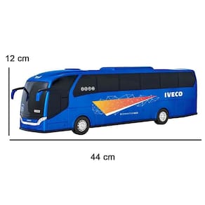Ônibus de Brinquedo Iveco Connection Cor: Azul O Ônibus Iveco é uma miniatura perfeita de ônibus em forma de brinquedo para a criança brincar e se divertir. Ele é todo adesivado, no qual caso você quiser, pode retirá-los É super divertido. Estimula a interação entre pais e filhos, desenvolve a imaginação, a criatividade, a coordenação motora.