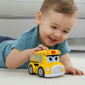 Destaques e Benefícios: Ativação por toque: comandos simples e intuitivos Sons variados: buzina, motor e sirene Luzes piscantes que prendem a atenção da criança Movimento com balanço divertido enquanto anda Estrutura segura e tamanho ideal para as mãozinhas pequenas Estimula a imaginação e o faz de conta com temática escolar