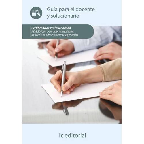 La presente guía está destinada a ofrecer al cuerpo docente responsable de la enseñanza del programa de Cualificaciones Profesionales y Certificados de Profesionalidad, una guía metodológica para obtener el máximo rendimiento de los contenidos formativos desarrollados, y para mejorar las habilidades comunicativas y la aplicación de una metodología lo más efectiva y práctica posible.Además ofrece los Solucionarios de los ejercicios de autoevaluación de cada uno de los manuales que componen el presente certificado, para que el docente pueda ayudarse de ellos para resolverlos y evaluarlos. Marca: BIBLIOMANAGER