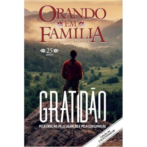Devocional diário Orando em Família - Volume 25. Edição de Colecionador. ESPECIAL: 25 anos! Tema: GRATIDÃO PELA CRIAÇÃO PELA SALVAÇÃO E PELA CONSUMAÇÃO. Nossa geração é conhecida por reclamar seus direitos. Reclamações mil marcam as relações de trabalho o convívio social e não menos o familiar. Os outros sempre estão em dívidas conosco. Não admira que gratidão tenha se tornado algo raro muito raro mesmo! Ser agradecido não é atitude óbvia nem natural. Só o aprendemos ao reconhecer que tudo o que somos e temos é um presente imerecido. Na medida em que Deus revela seu amor a nós não podemos deixar de expressar nosso Muito obrigado! a ele! Assim Orando em Família irá encorajar você a remar contra a maré da reclamação e a expressar profunda gratidão em todas as situações da vida.