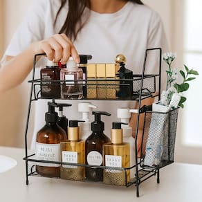 O Organizador Multiuso 2 Andares Aramado é o toque de sofisticação que falta para otimizar sua bancada. Com um design inteligente que aproveita o espaço vertical, ele mantém perfumes, cosméticos ou temperos sempre ao alcance das mãos no uso cotidiano. Sua estrutura em metal aramado não apenas facilita a limpeza, mas também traz um diferencial estético moderno que transforma o caos em organização profissional.