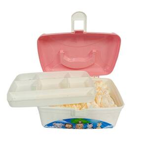Organizador de Fraldas + Farmacinha A peça possibilita que as mamães e papais mantenham a organização do quarto de bebê é perfeita para armazenar medicamentos e as fraldas do dia a dia.Acompanha:- 1 Maleta- 1 DivisóriaTAMANHO TOTAL: 13x16x26 cm.Equivalente à 5L.
