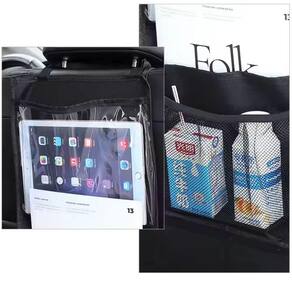 Principais Benefícios: Bolso para tablet touch ? Compatível com dispositivos de até 10,1? Múltiplos compartimentos ? Armazene livros, revistas, brinquedos e muito mais Proteção do banco ? Evita sujeira e marcas de sapatos no encosto Fácil instalação ? Fixação rápida com tiras ajustáveis no apoio de cabeça Material resistente ? Feito de tecido Oxford durável, à prova d'água e fácil de limpar