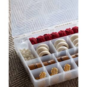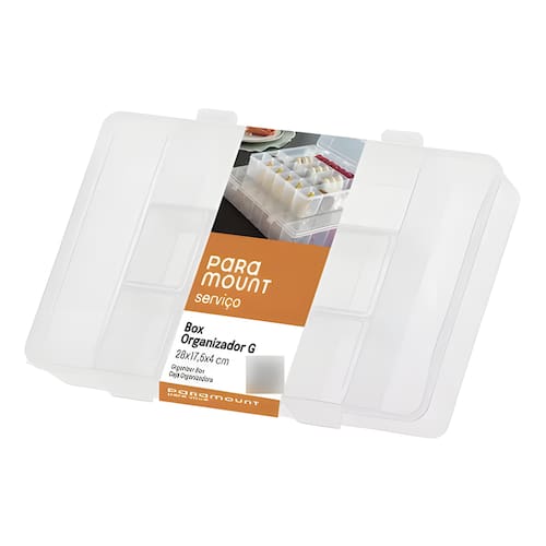 Organizador com Divisórias G Paramount Cansado(a) de bagunça? Apresentamos a solução perfeita para manter seus espaços arrumados com praticidade e economia: o Organizador com Trava (Tamanho G) da Paramount! Ideal para quem busca organização eficiente e um ótimo custo-benefício, este organizador é seu aliado na tarefa de colocar tudo em ordem, desde brincos, artigos de artesanato, costura, miçangas, pesca entre outros.