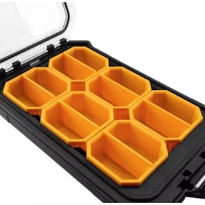 Organizador compacto de baixo perfil Stacktech foi projetado para ajudar os profissionais a manterem suas ferramentas organizadas, otimizando o trabalho de maneira mais inteligente e eficiente. Ele se encaixa automaticamente em qualquer caixa de ferramentas Stacktech, travando para transporte e desbloqueando facilmente com o simples toque de uma alavanca. A visualização do conteúdo e o acesso ao organizador são facilitados por uma tampa transparente e um fecho central de fácil manuseio com uma só mão. Dentro, você encontrará 6 compartimentos e 6 divisórias, oferecendo ampla capacidade para manter tudo organizado e separar o espaço conforme necessário. O organizador é desenvolvido para permitir que os profissionais construam um sistema exclusivo e personalizem suas ferramentas de acordo com as necessidades de cada atividade. Características:- EMPILHAMENTO FÁCIL: Caixas com auto alinhamento para empilhamento eficiente. - TRAVAMENTO AUTOMÁTICO: O mecanismo trava o organizador assim que é encaixado no lugar. - FECHO CENTRAL: Acesso rápido e prático com uma mão. - PROTEÇÃO IP65: Vedação com anel de silicone que bloqueia a entrada de poeira e água. - ORGANIZAÇÃO INTERNA: Inclui 6 compartimentos e 6 divisórias. Medidas:- Comprimento com alça: 46cm. - Comprimento sem alça: 40cm. - Largura: 25cm. - Altura: 10cm.