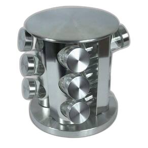 - 12 potes de vidro com tampas herméticas para manter os temperos frescos por mais tempo. - Base giratória 360 em aço inox, proporcionando fácil acesso e economia de espaço. - Design compacto e elegante, ideal para qualquer estilo de cozinha. - Material resistente e durável, garantindo longa vida útil ao produto. - Dimensões: 19 x 19 x 24 - Medidas Frascos: Altura 9,5cm x Diâmetro 4cm