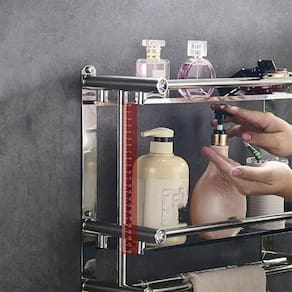 Organize a sua casa com esse organizador multifuncional, ele possui duas prateleiras, quatro ganchos, perfeito para colocar toalhas, panos de prato ou utensilios de cozinha.