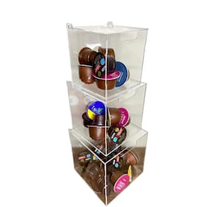 Com este conjunto, você terá 3 caixas de acrílico Cristal, cada uma com dimensões diferentes para acomodar diferentes quantidades de cápsulas. A caixa 1 possui dimensões de 11x11x11 cm, a caixa 2 mede 13x13x13 cm e a caixa 3 tem dimensões de 15x15x15 cm. Assim, você poderá armazenar e visualizar facilmente suas cápsulas, sem precisar abrir cada caixa para saber qual sabor está dentro.