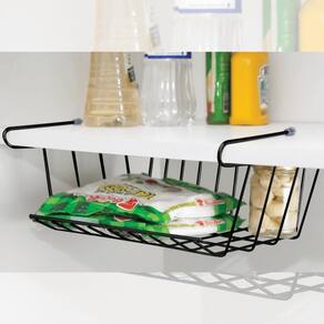 Esse organizador de armário de cozinha suspenso da Utimil é uma solução prática para otimizar o espaço no interior dos armários e manter a cozinha organizada. A cor preta confere um toque moderno e versátil, que pode se integrar bem com diversos estilos de decoração de cozinha. A instalação do organizador de armário é bem prática, basta encaixar as duas hastes na prateleira do balcão. Com espaço generoso, é ideal para armazenar pacotes de alimentos, evitando pilhas muito grandes, e facilitando o acesso. Pode ser utilizado também para organizar itens de lavanderia, ou até mesmo em seu quarto.