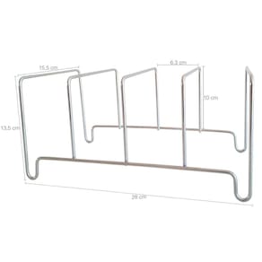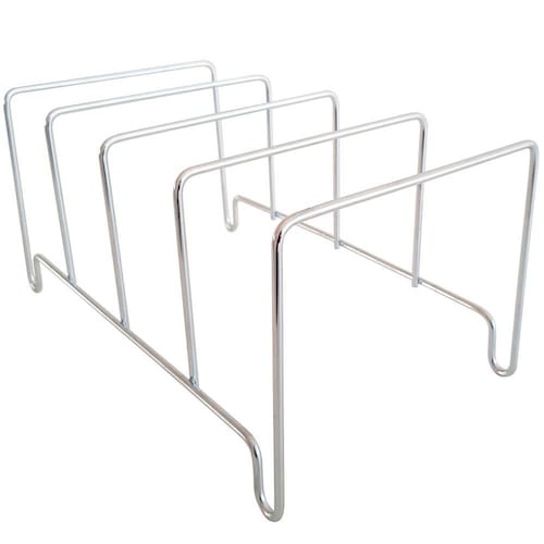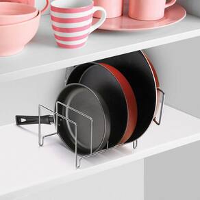 O organizador de armário de cozinha proporciona praticidade e facilidade na hora de procurar os utensílios para utilizá-los e ainda otimizar espaço nas prateleiras. O organizador de travessas conta com quatro divisórias que permitem a acomodação e evitam o empilhamento desordenado das formas e refratários no seu armário. Também podendo ser utilizado como porta tampa de panela, a peça possui alto brilho, que confere um design elegante na composição.