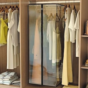Organizador de armário transparente com cabide ziper 1,05cm A linha de organizadores, foi projetada com base nas necessidades atuais de organização e design. O organizador transparente perdurável tem fechamento com zíper e mantém suas roupas protegidas. Para colocá-lo em seu armário é super fácil, basta utilizar o cabideiro para posicionar seus três ganchos. Com ele, você pode isolar as roupas da próxima estação ou as mais sensíveis.