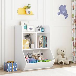 - Estante infantil e armazenamento de brinquedos: feita de madeira projetada de alta qualidade, estável e durável; a superfície pintada de branco é lisa e resistente ao desgaste, e sua cor brilhante pode ser combinada com qualquer estilo de casa.