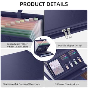 Mais fácil de armazenar e transportar - Tamanho: C 36 cm x L 27 cm x A 4 cm. - Super segurança de armazenamento de documentos – Huolewa superfície de um organizador de arquivos sanfonado à prova de fogo é feita de 3 camadas de fibra de vidro revestida de silicone anti-coceira retardante de chama de alta qualidade que pode suportar temperaturas de até 1093 °C. Ao mesmo tempo, é extremamente à prova d'água, o que pode evitar que seus documentos importantes e objetos valiosos sejam destruídos em um acidente. Um item essencial para quem procura uma solução confiável, portátil e à prova de fogo para organização de documentos! - Mais fácil de armazenar e transportar - Tamanho: C 36 cm x L 27 cm x A 4 cm. Em comparação com caixas grandes à prova de fogo no mercado, as pastas organizadoras de arquivos portáteis têm tamanho razoável e são leves. Se é utilizado para armazenar papéis importantes, cartas, arquivos A4, recibos, cartões, unidades USB, canetas, passaportes, etc. Também pode ser transportado com você em viagens de negócios e viagens. A cor preta clássica e as linhas simples se adaptam perfeitamente ao seu estilo de vida agitado. Também é o melhor presente para sua família e amigos. - Organizador de documentos multiuso – não é apenas um organizador de pastas de arquivos expansível, é também o seu gerenciador de arquivos pessoal, pode atender a todas as suas necessidades importantes de armazenamento de documentos! O pequeno porta-documentos contém uma pasta sanfonada de 13 páginas, um bolso com zíper, um bolso expansível, 4 bolsas tamanho passaporte com 6 compartimentos para cartão + 4 compartimentos USB; um organizador de arquivos é multiuso e pode ser facilmente organizado e armazenar seus arquivos, proporcionando praticidade a qualquer momento, economizando tempo e dinheiro. - Design funcional exclusivo – Nosso organizador de pastas de arquivos sanfonado está equipado com zíperes duplos para acesso e fechamento suaves, você pode se despedir de preocupações sobre perder papéis cruciais. Etiquetas coloridas para classificação, permitem que você classifique rapidamente seus arquivos e encontre rapidamente os arquivos que você precisa ao usá-lo. O organizador de pastas de arquivos expansível à prova de fogo garante que cada arquivo seja fácil de identificar. - Compre com confiança - 30 dias sem motivo para devolver o produto. Nosso organizador de pastas de arquivos expansível foi testado quanto à durabilidade e funcionalidade por terceiros antes de serem enviados para você. Fazemos o nosso melhor para garantir que os produtos satisfaçam todos os clientes. Se você tiver alguma dúvida ou não estiver satisfeito com nossos produtos, sinta-se à vontade para entrar em contato conosco. Definitivamente resolveremos o seu problema!