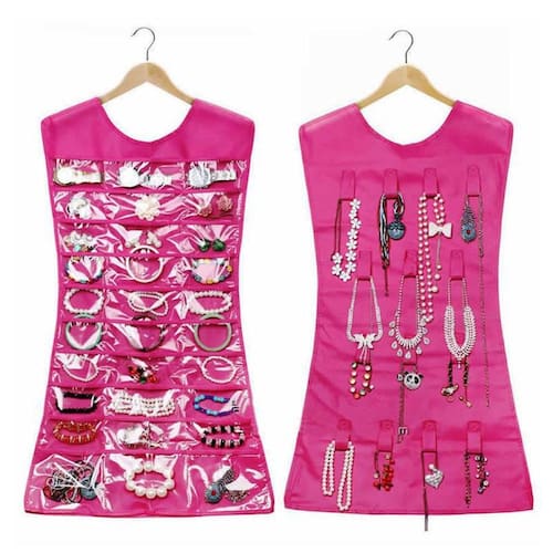 Acessório prático para organizar seus acessórios junto com suas roupas. Possui 30 bolsos individuais de vinil transparente para guardar brincos, anéis, relógios e pulseiras e na parte de trás possui 14 ganchos para pendurar colares, correntes, brincos de argola e muito mais Muito prático para visualização. Perfeito para utilizar no dia a dia. Aumente a vida útil de suas joias. Os bolsos são acolchoados e macios. Mantenha suas joias armazenadas com segurança.