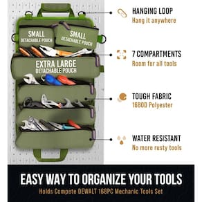 Apresentamos nosso organizador de bolsa de enrolar de ferramentas premium, a solução perfeita para organizar e armazenar todas as suas ferramentas. Seja você um entusiasta de bricolage, mecânico ou eletricista, esta bolsa organizadora de ferramentas é a melhor solução de armazenamento de ferramentas. Feita de material de lona durável, esta bolsa de ferramentas de enrolar é projetada para suportar até mesmo as condições mais difíceis. Sua construção resistente garante que suas ferramentas permaneçam seguras e protegidas, esteja você carregando-as em sua mochila, caminhão ou caixa de ferramentas. Esta bolsa organizadora de ferramentas é incrivelmente versátil, com suportes especializados para chaves, soquetes e acessórios, tornando-a a bolsa de ferramentas perfeita para qualquer trabalho. Com um interior espaçoso e vários bolsos, esta bolsa de enrolar para ferramentas pode guardar tudo, desde pequenos acessórios até grandes ferramentas elétricas. O design prático de enrolar desta bolsa de ferramentas facilita o armazenamento e o transporte de suas ferramentas. Se você estiver indo para um local de trabalho ou trabalhando em um projeto em casa, esta bolsa de ferramentas enrolável manterá suas ferramentas organizadas e facilmente acessíveis. Este organizador de bolsa de enrolar também possui um design elegante e elegante, perfeito para aqueles que querem se destacar. Se você prefere couro ou lona, oferecemos uma variedade de opções para se adequar ao seu estilo. E com seu tamanho compacto, esta bolsa de enrolar para ferramentas é perfeita para homens e mulheres. Além de sua funcionalidade prática, esta bolsa de ferramentas de enrolar também vem com uma variedade de acessórios, incluindo um bolso para furadeira, zíper e vários bolsos para armazenamento. Então, se você está procurando uma bolsa organizadora de alta qualidade e resistente, não procure mais, nossa bolsa de enrolar de ferramentas premium. - Garantia vitalícia real – Se sua bolsa rasga, rasga ou desfia, nós a substituiremos sem nenhum custo. É um ótimo presente para o pai no dia dos pais. Organizador de rolo de ferramentas, bolsa de enrolar, bolsa de ferramentas, organizador de chaves - Durável e de longa duração --- a bolsa de enrolar para ferramentas Craft911 é feita de poliéster 1680D e costura reforçada, garantindo que possa suportar o desgaste diário, resistindo à abrasão, furos e rasgos. A costura reforçada aumenta ainda mais a durabilidade da bolsa, garantindo que ela possa suportar ferramentas e acessórios pesados sem rasgar ou desgastar. Fácil de limpar, é um investimento duradouro que manterá suas ferramentas seguras e organizadas por muitos anos. - Compacta e conveniente --- nossa bolsa de enrolar para ferramentas mede 30,5 cm de largura e 32,5 cm de comprimento (enrolada) e desdobra 48 cm, tornando-a uma solução de armazenamento portátil e fácil de transportar. Com seis bolsas individuais, cinco internas e uma externa, oferece amplo espaço para todas as suas ferramentas e acessórios essenciais, ajudando você a se manter organizado e eficiente no trabalho. Seu design dobrável permite que você acesse facilmente suas ferramentas e as mantenha organizadas em um só lugar. - Fácil de usar --- O design dobrável desta bolsa de ferramentas facilita o acesso às suas ferramentas e as mantém organizadas em um só lugar. É uma solução de armazenamento que economiza tempo que mantém seu espaço de trabalho limpo e organizado. O fecho de fecho aderente mantém suas ferramentas firmemente no lugar, evitando que escorreguem ou se percam, enquanto a costura reforçada adiciona uma camada extra de proteção. A bolsa é leve e fácil de transportar, tornando-a perfeita para profissionais e entusiastas de bricolage. - Zíper de alta qualidade --- nossa bolsa dobrável para ferramentas possui um zíper de metal durável com um puxador em T que garante abertura e fechamento fáceis e suaves. Este zíper de alta qualidade é feito para durar e pode suportar o desgaste do uso diário. O puxador em T facilita segurar e puxar, mesmo quando você está usando luvas ou suas mãos estão oleosas ou sujas. É um ótimo recurso que aumenta a conveniência e acessibilidade da bolsa. O zíper também adiciona um toque elegante ao design da bolsa. - Versátil --- Esta bolsa de enrolar para ferramentas é uma solução de armazenamento versátil que pode ser usada para organizar e armazenar uma variedade de ferramentas e acessórios. Com suas 6 bolsas individuais, 5 internas e 1 externa, oferece amplo espaço para tudo, desde chaves de fenda e chaves a alicates e martelos. O tamanho compacto e portátil da bolsa também a torna perfeita para uso em movimento, seja você um comerciante ou um entusiasta de bricolage. É uma opção de armazenamento versátil que pode se adaptar a qualquer situação. - Segura e segura --- esta bolsa dobrável para ferramentas oferece uma opção de armazenamento segura e segura para suas ferramentas e acessórios. O fecho de fecho aderente mantém suas ferramentas firmemente no lugar, evitando que escorreguem ou se percam, enquanto a costura reforçada adiciona uma camada extra de proteção. A bolsa é feita de material de lona Oxford 1680D resistente, que é durável e resistente a rasgos, garantindo que suas ferramentas permaneçam seguras e protegidas em todos os momentos. Mantenha suas ferramentas organizadas e compactas.