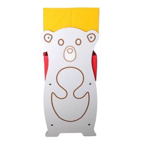 A estrutura lateral em MDF branco conta com um lindo desenho de ursinho, que torna o móvel ainda mais atrativo para as crianças. As hastes de madeira revestidas em PVC garantem resistência, enquanto as caixas coloridas em vermelho, amarelo, azul, verde e amarelo trazem alegria e vivacidade ao espaço.