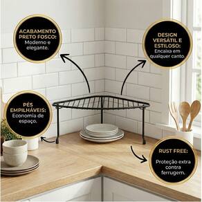 DESCRIÇÃO DO PRODUTO: Para facilitar a rotina e proporcionar organização, a Future desenvolveu uma linha completa de produtos práticos e versáteis. O organizador de canto componível aramado é ideal para proporcionar organização no armário e manter as louças em segurança, bem como aumentar o tamanho dos espaços do armário, pois cria uma prateleira que permite o armazenamento produtos em espaços antes não ocupados. Tem a possibilidade de empilhamento, desta forma você pode compor níveis, seu formado faz com que seja possível aproveitar facilmente os cantos do armário.